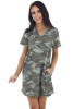 Army Green Camo Print Short Sleeve V Neck Knit Mini Dress LC224906-9