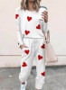 Women's Loungewear Sets Heart-shaped Color Block Round Neck Long Sleeve Slim Ankle-length Two Piece Sets LC621536