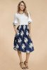 White Top Flora Skirt Layered Bell Sleeve Dress LC610051-1