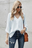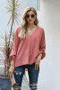 Brown V Neck 3/4 Sleeve High Low Hem Shirt LC2511106-17