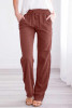Khaki Drawstring Elastic Waist Pockets Long Straight Legs Pants LC771277-16