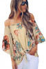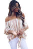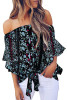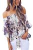 White Off Shoulder Floral Tie Front High Low Chiffon Blouse LC252111-1