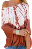 Orange Tie-Dye Print Long Batwing Sleeve Loose Casual Blouse LC253630-3