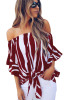Off The Shoulder Vertical Stripes Blouse in Blue LC251051-5