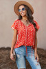 Multicolor V-neck Short Sleeve Fashion Print Fantasy Fluttering Blouse LC2514201-22