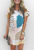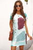 Light Blue Leopard Splicing Color Block Mini Dress LC223882-4